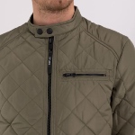 Blouson homme Replay Jeans de couleur kaki, coupe veste motard à matelassage léger (doudoune légère) en losange.