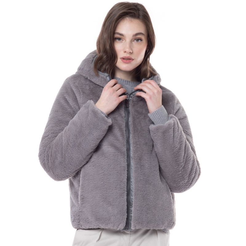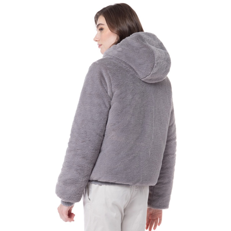 Doudoune femme Us Polo Assn en nylon gris réversible côté fourrure.