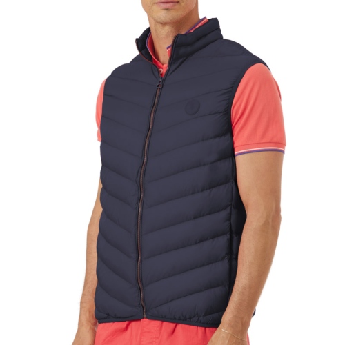 Doudoune sans manches Us Polo homme couleur bleu marine avec coutures en chevrons et écusson Uspa brodée à la poitrine.