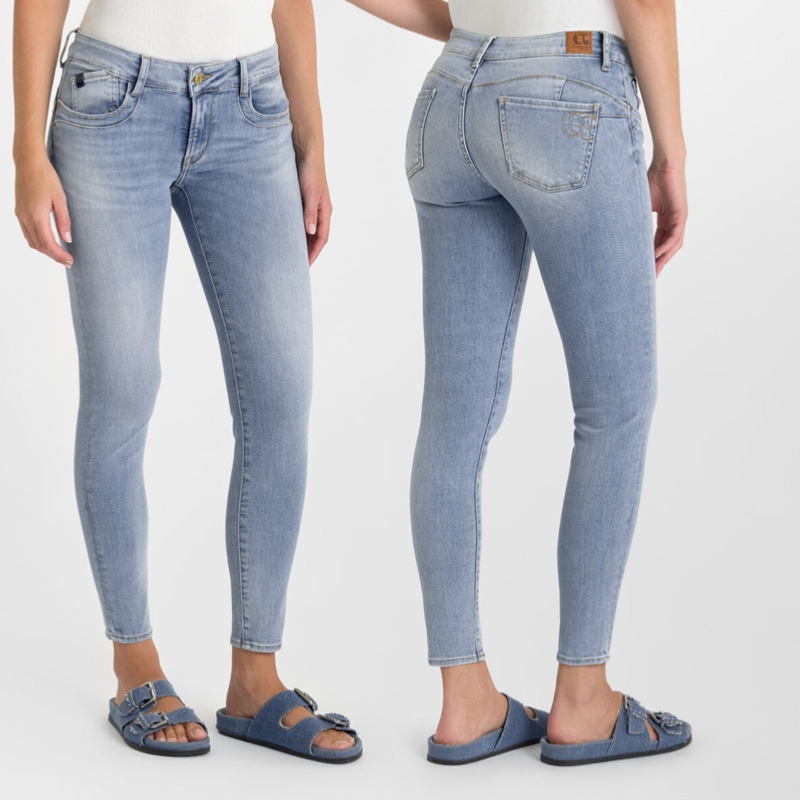 Jeans femme Le Temps des Cerises modèle Pulp C coupe slim longueur 7/8éme, poches galbantes léger effet push up finition nommée Kursi délavage W6005