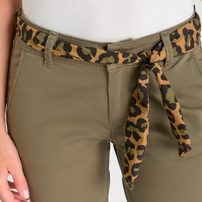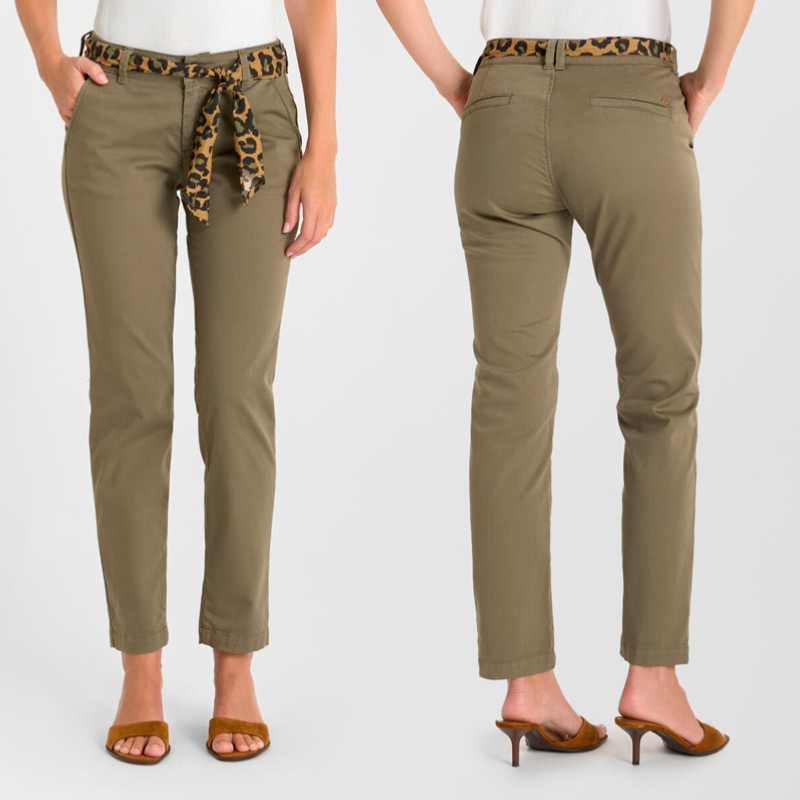 Le Pantalon Chino femme Le Temps des Cerises modèle Kristin reprend les codes du modèle Dyli mais avec une jambe légèrement plus décollée (identique aux jeans le temps des cerises 417 pour les connaisseurses) proposé ici en coloris kaki lizard.