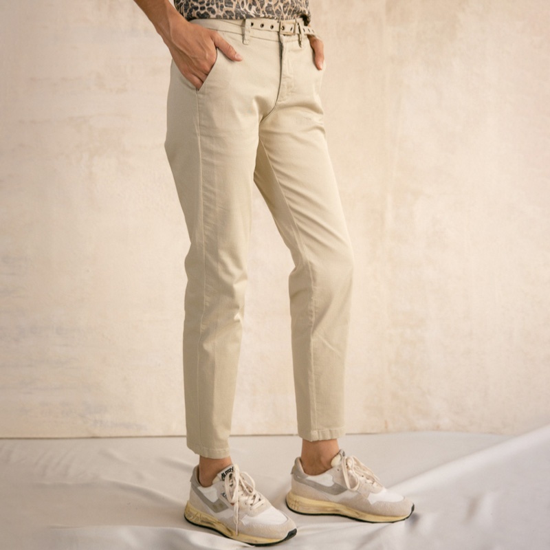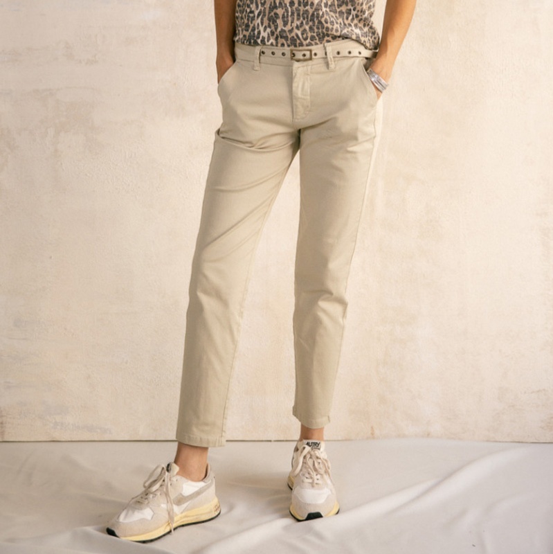 Pantalon chino Freeman T Porter pour femme modèle claudia felicita beige abbey stone coupe fuselée légèrement décollé de jambe, longueur à la cheville.