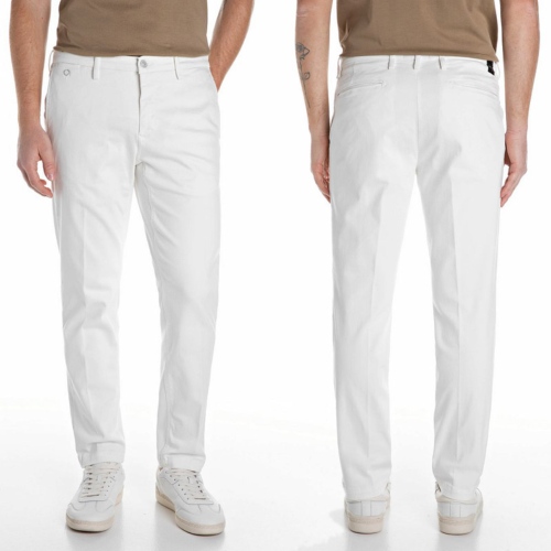 Pantalon chino Replay Jeans fabriqué en coton stretch technologie hyperflex de très haute qualité, coloris blanc, coupe droite regular fit
