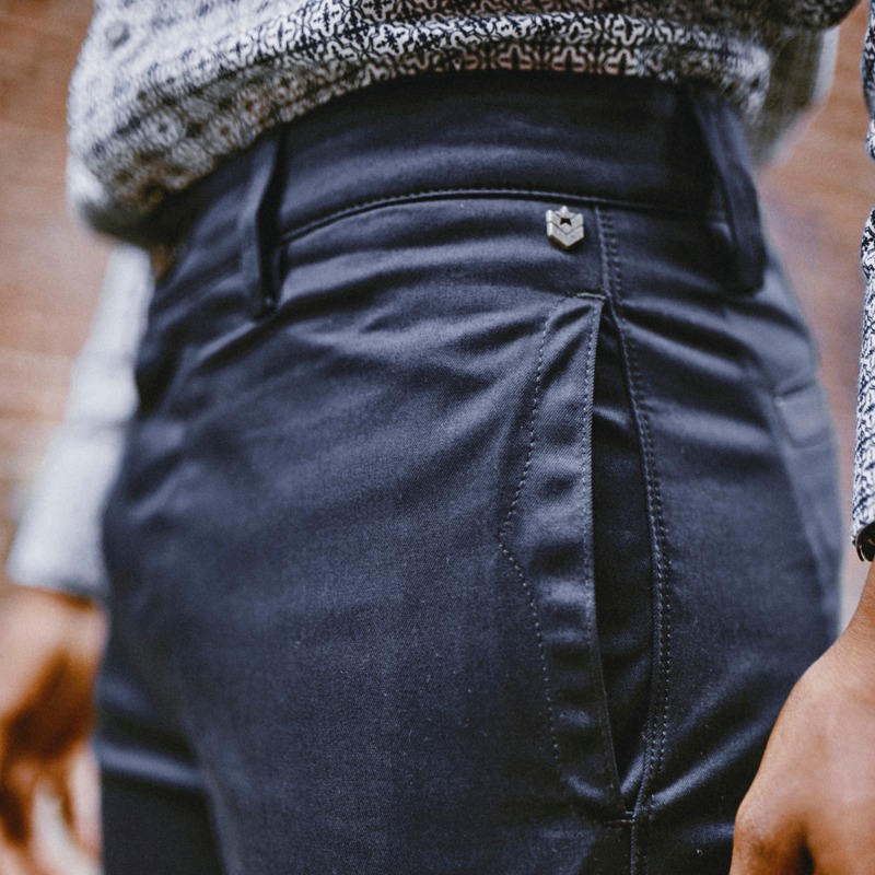 Pantalon Freeman T Porter pour homme modèle Hawking toile enduite bleu marine indigo avec poches façon chino.