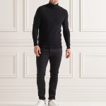 Pull col roulé homme Superdry collection Studio confectionné en maille 100% laine d'agneau noire, petite étiquette superdry brodée sur la manche droite