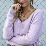 Pull femme Freeman T Porter modèle Priscillia en maille laine et cachemire mélangé couleur lavande, réversible col V ou rond