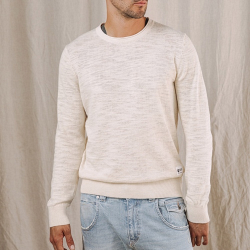 Pullover homme Freeman T Porter modèle Solino Sluby en maille coton et lin beige light gray.