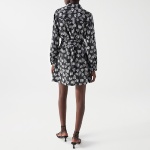 Robe Salsa Jeans pour femme en lyocell noir à motifs blancs imprimés, col type chemise et manches longues