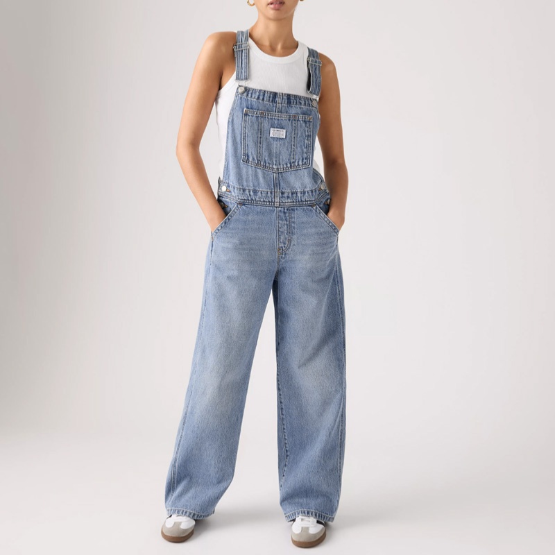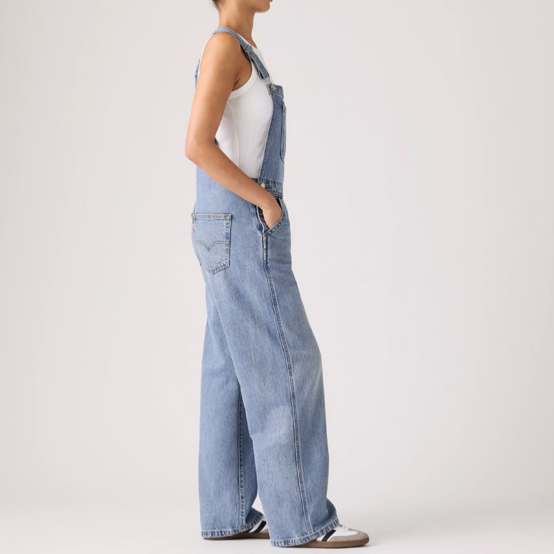 Salopette en jeans Levi's pour femme avec jambes amples en denim haute qualité 100% coton délavage nommée Not The Same Overall.
