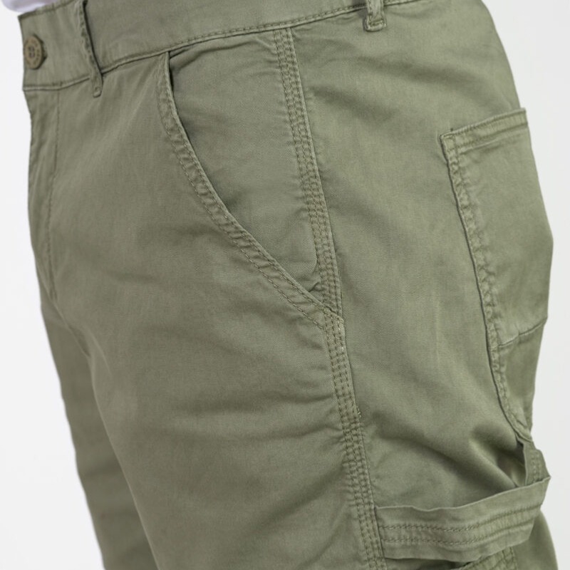 Short en toile kaki Le Temps des Cerises pour homme modèle Nox Pesto.