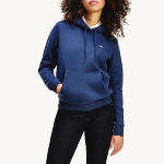 Sweat à capuche Tommy Hilfiger collection Tommy Jeans femme en molleton bleu marine black iris avec petit logo Tommy Flag brodé à la poitrine