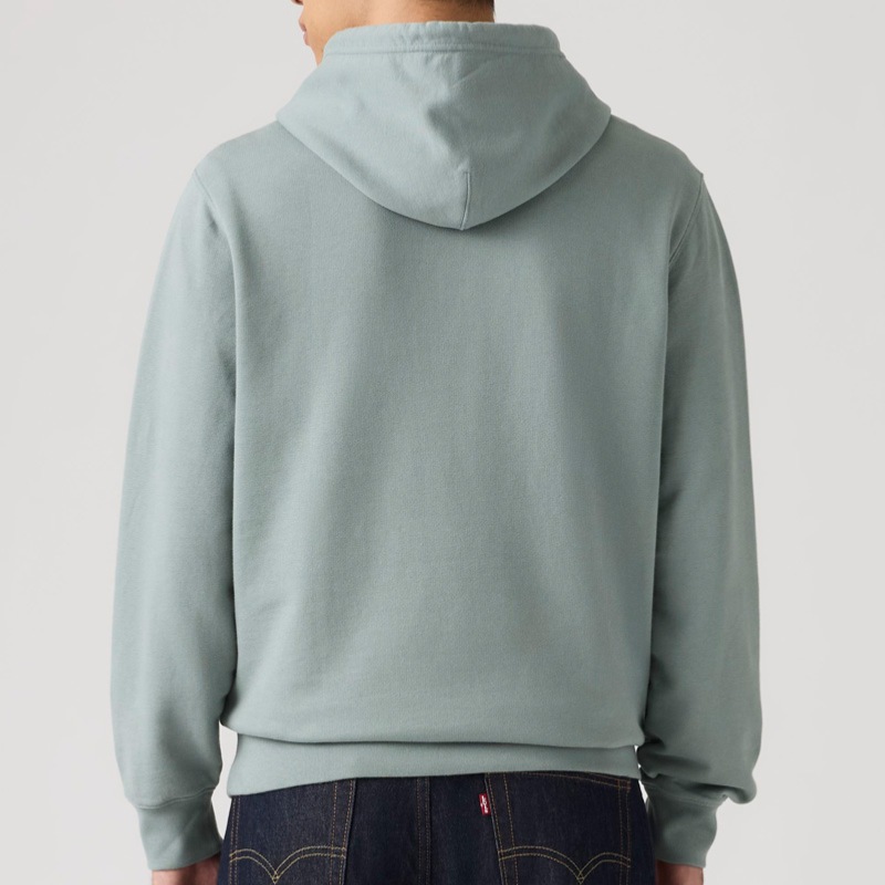 Sweat à capuche Levis pour homme modèle The Original Hm Hoodie en coton french terry gris bleu lead avec petit logo Levi's batwing rouge brodé à la poitrine.