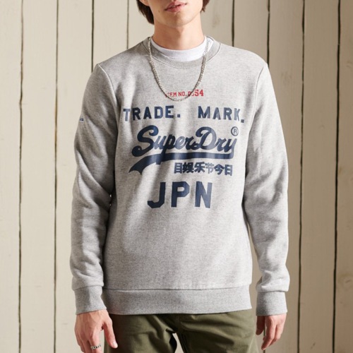 Sweat Superdry homme Vintage Logo American Classic gris