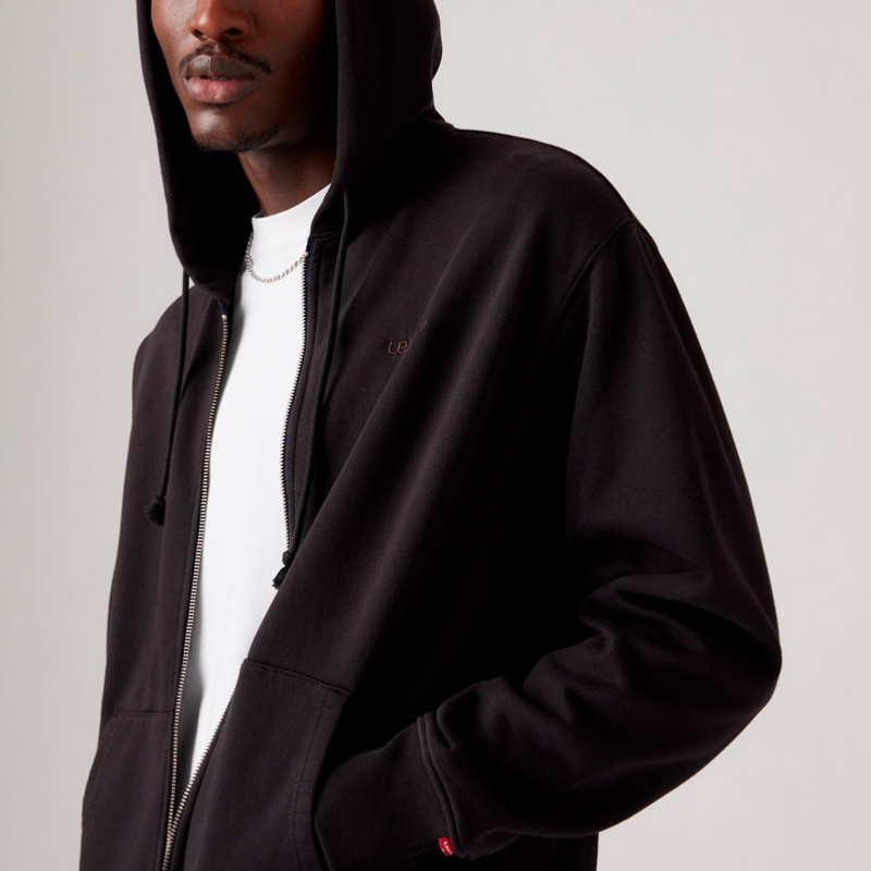 Veste / Sweat zippé à capuche Levis pour homme modèle Authentic Full Zip en coton mélangé noir.
