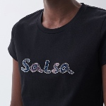T Shirt noir Salsa pour femme avec logo en perles brodées.