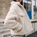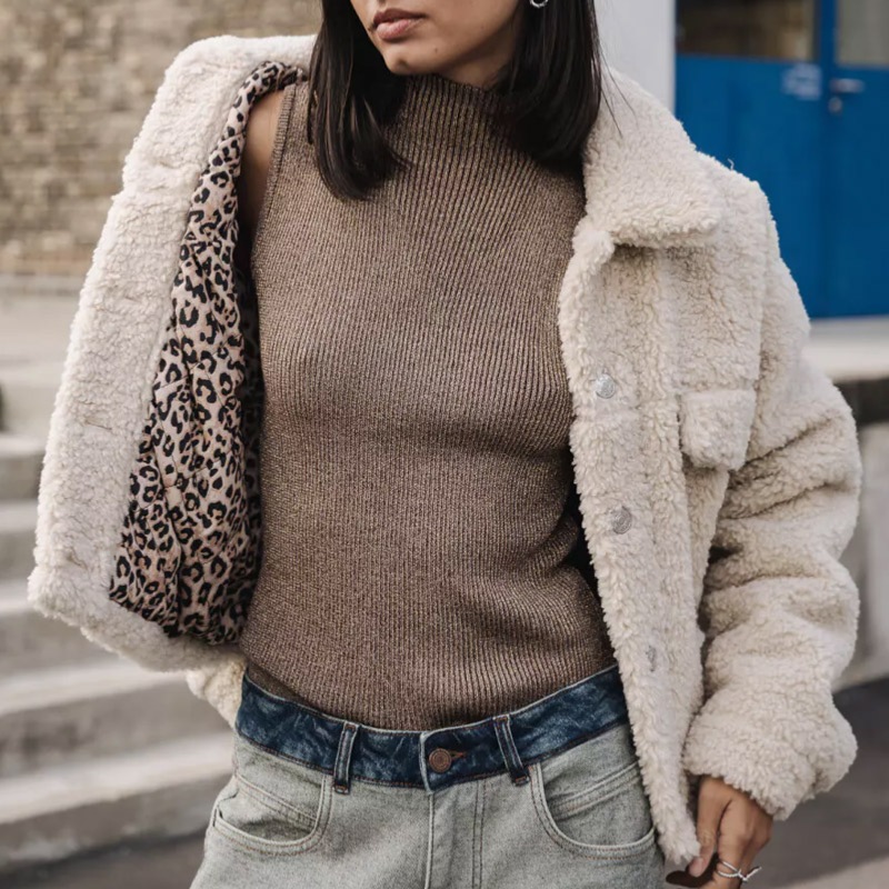 Veste / Blouson femme Freeman T Porter modèle Merine Fur en sherpa écru avec une doublure en imprimé léopard pour la touche féminine