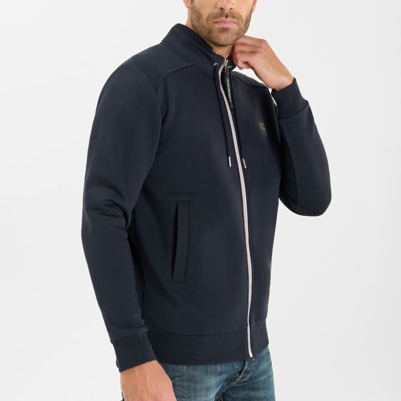 Veste Le Temps des Cerises pour homme modèle Olago coloris bleu marine galaxy, col montant avec lien, zip avec finition rouge